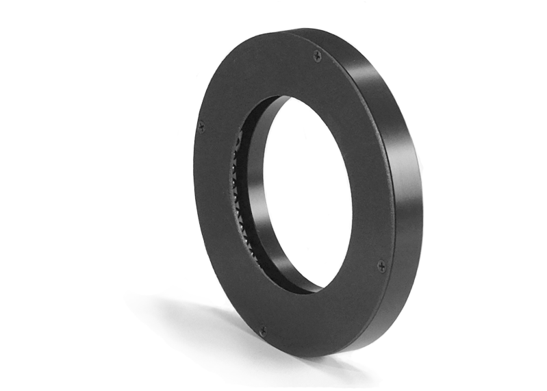 Flacher Einstrahlwinkel. Glatte, gerade Flächen bleiben im Kamerabild dunkel, Kanten, Gravuren, Kratzer, Partikel u.Ä. werden hervorgehoben.